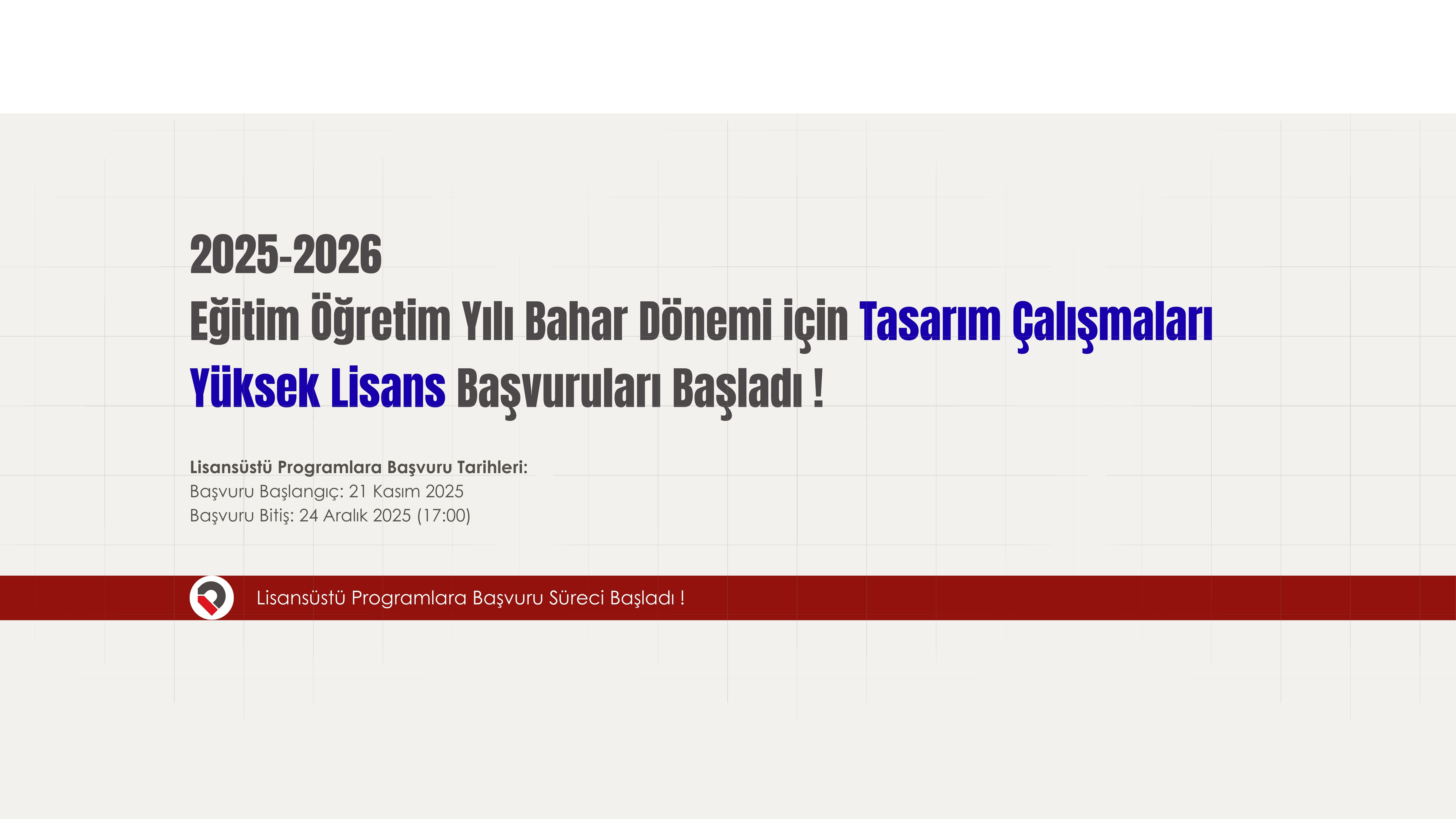 2025-2026 Eğitim-Öğretim Yılı Bahar Yarıyılı için Tasarım Çalışmaları Yüksek Lisans Başvuruları Açıldı!