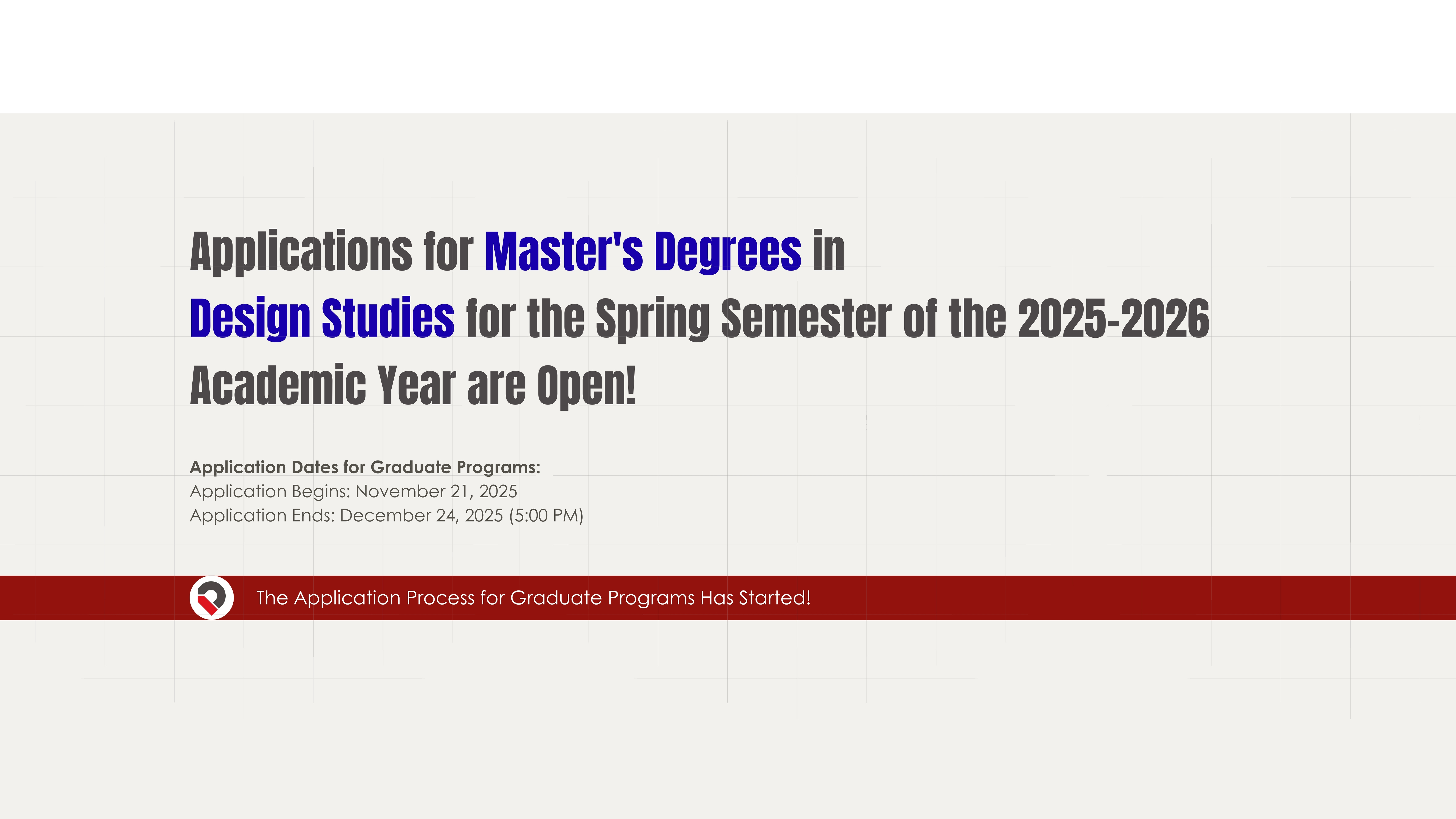 • Applications Are Now Open for the Design Studies Master’s Programme for the Spring Semester of the 2025–2026 Academic Year!
